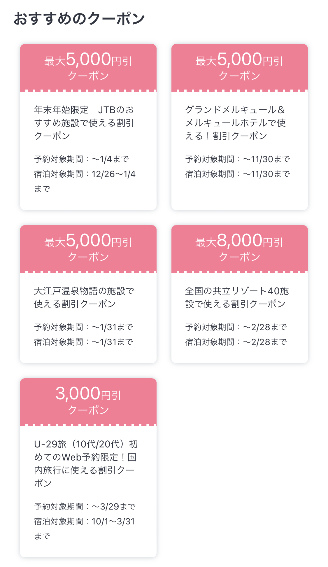 他の方の評判以上に、JTBをかなりゴリ押ししているみたいになってしまいましたが(笑)